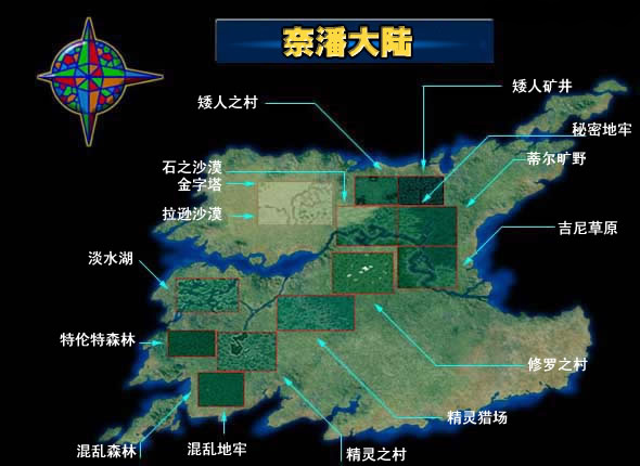 构成游戏的区域为奈潘大陆,现有的区域如上图.
